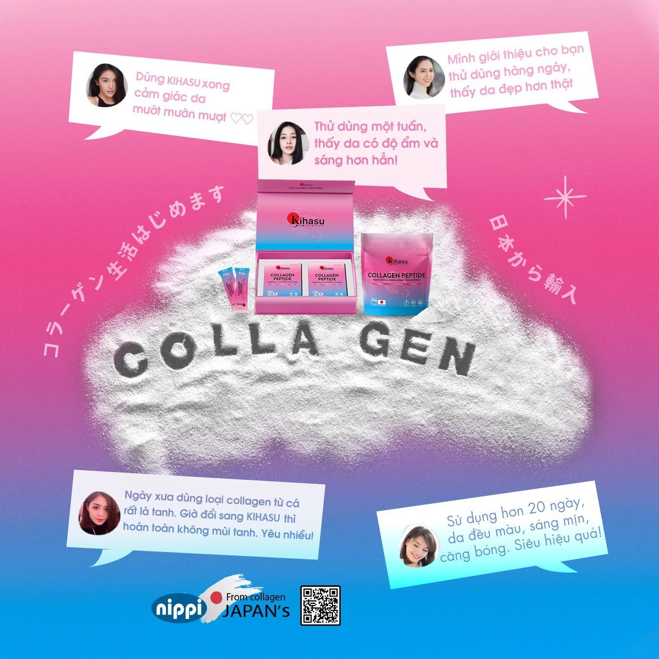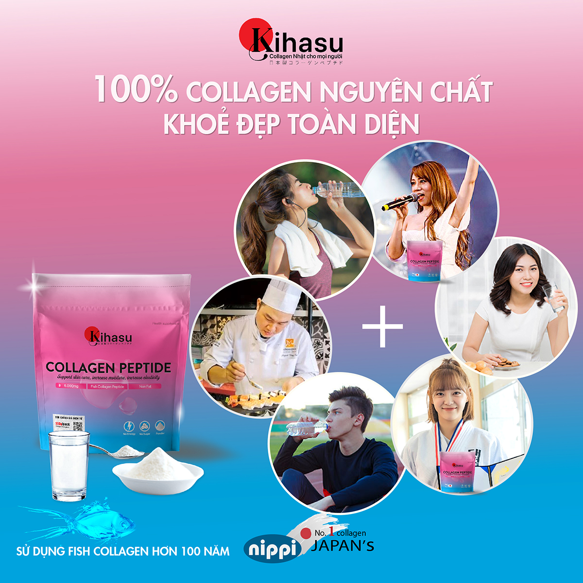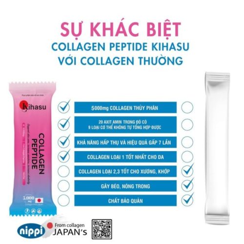 • Collagen peptide (Cá tuyết nước sâu) tinh khiết 100%: 1260 mg